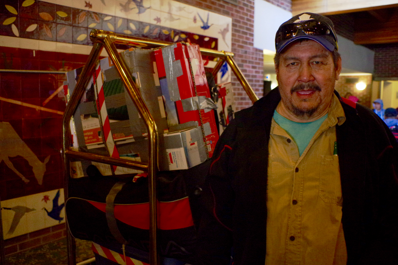 Kashechewan’s David Wesley was busy preparing luggage in Thunder Bay for a May 12 flight back home after Elders declared the community was out of danger on May 9. Photo by Rick Garrick.