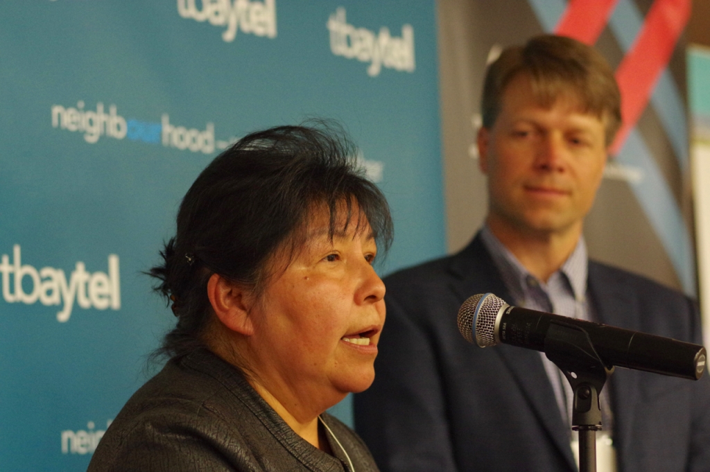 Margaret Kenequanash, executive director of Shibogama First Nations Council, and Tim Lavoie, regional manager and director of Northern Development for Algoma Power Inc., spoke about the proposed Wataynikaneyap Power transmission line project to connect about 20 diesel generator-powered remote First Nation communities across northern Ontario to the electrical power grid.
