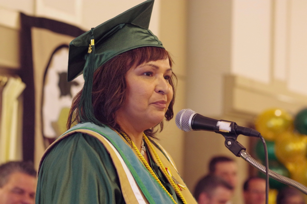 Aroland’s Donna Gagnon delivered the valedictorian address for the Social Services Worker - Native Specialization Program on June 10 at Oshki-Pimache-O-Win Education and Training Institute’s 2016 Graduation Ceremony in Thunder Bay. Photo by Rick Garrick