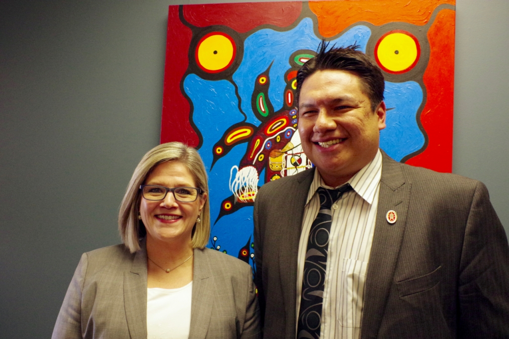 New Democratic Party leader Andrea Horwath met with Deputy Grand Chief Derek Fox and other NAN leaders over NAN's Health and Public Health Emergency declaration on March 11 in Thunder Bay. Photo by Rick Garrick.