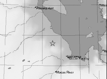 The epicenter of the earthquake was located about 69 kilometres northwest of Moosonee, somewhere between Moosonee and Fort Albany.