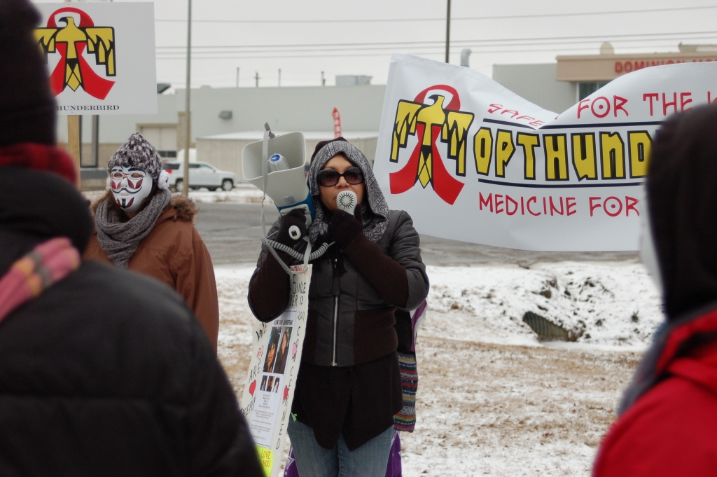 The remaining protestors came in from Toronto, Winnipeg, and Kenora in support of Operation Thunderbird and its mission to bring awareness of the issue of missing and murdered Indigenous women.