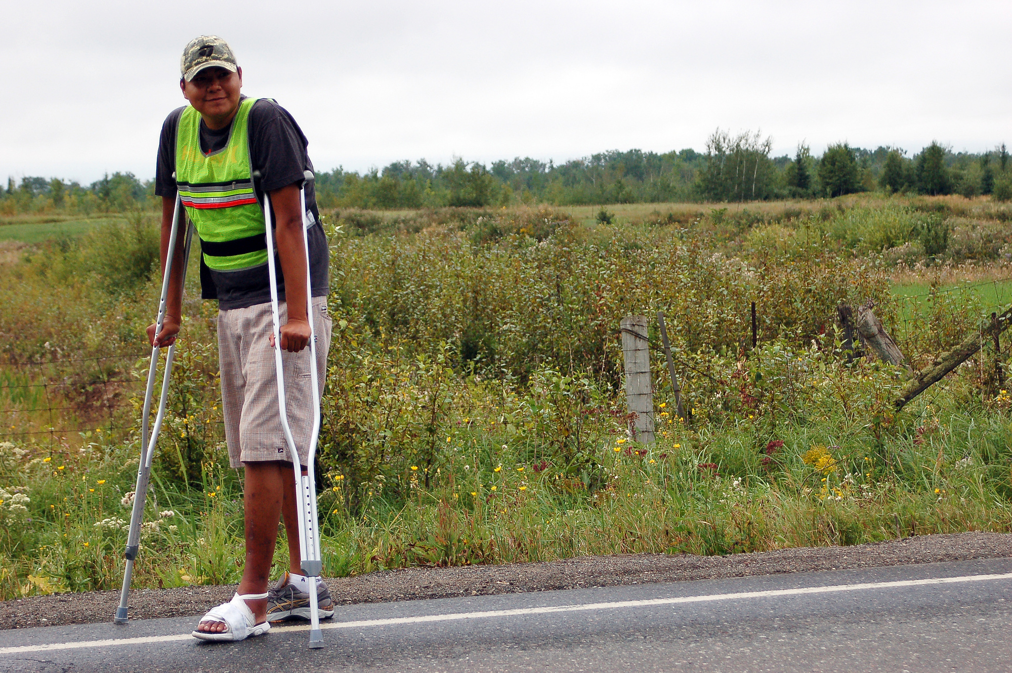 When he tried walking the next day, he only made it a kilometre before he had to be taken to the hospital again because of an infection. This time, he was given an IV and antibiotics and he was told he would need to return each day for the same treatment and to reapply the bandages on his left foot.