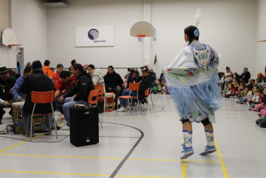 Students at the Ogden Community School in Thunder Bay experienced their first powwow on Dec. 14.