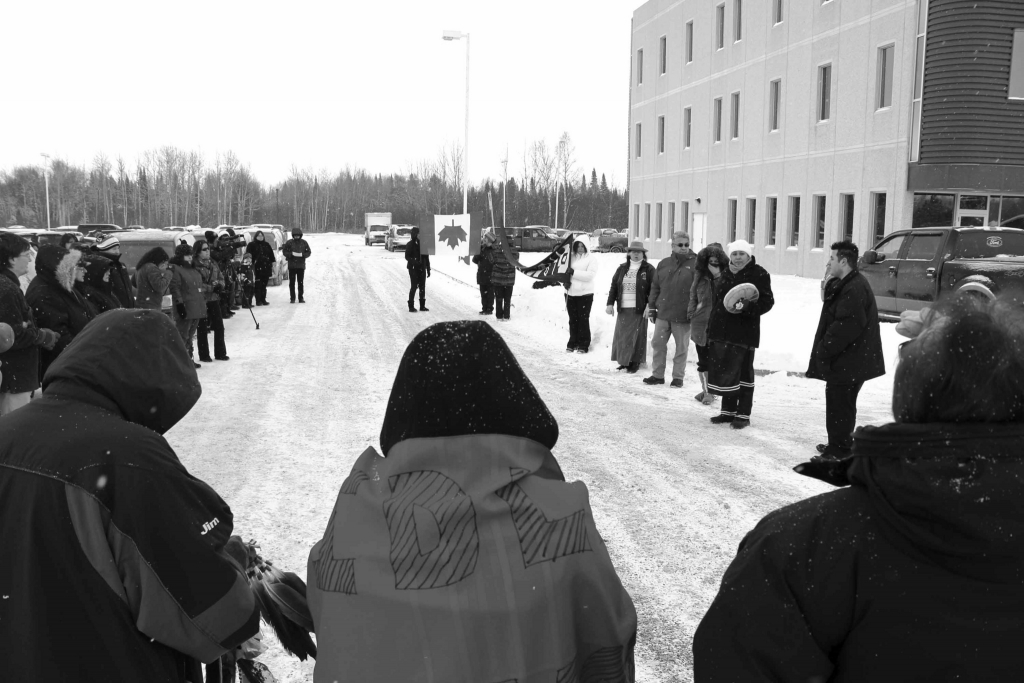 After a night of gathering and ceremonies of scared pipes, drummers and singers at Anishnawbe Mushkiki Thunder Bay Aboriginal Health Centre, the rally began at 10 a.m. with various speeches made by Horton, Bottle, NAN Deputy Chief Les Louttit and other community members outside the AANDC office. After an hour, the participants made their way into the lobby, where the crowd chanted “Idle No More.”