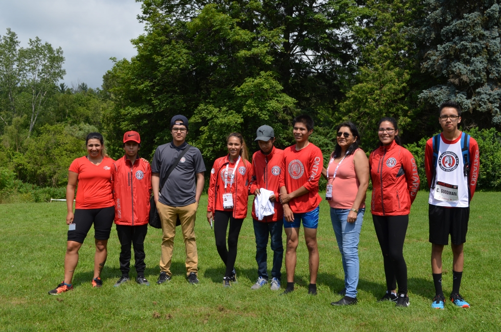 Deputy Grand Chief Anna Betty Achneepineskum meets with some of the Nishnawbe Aski Nation cross country athletes at the North American Indigenous Games 2017 in Toronto. Submitted photo.