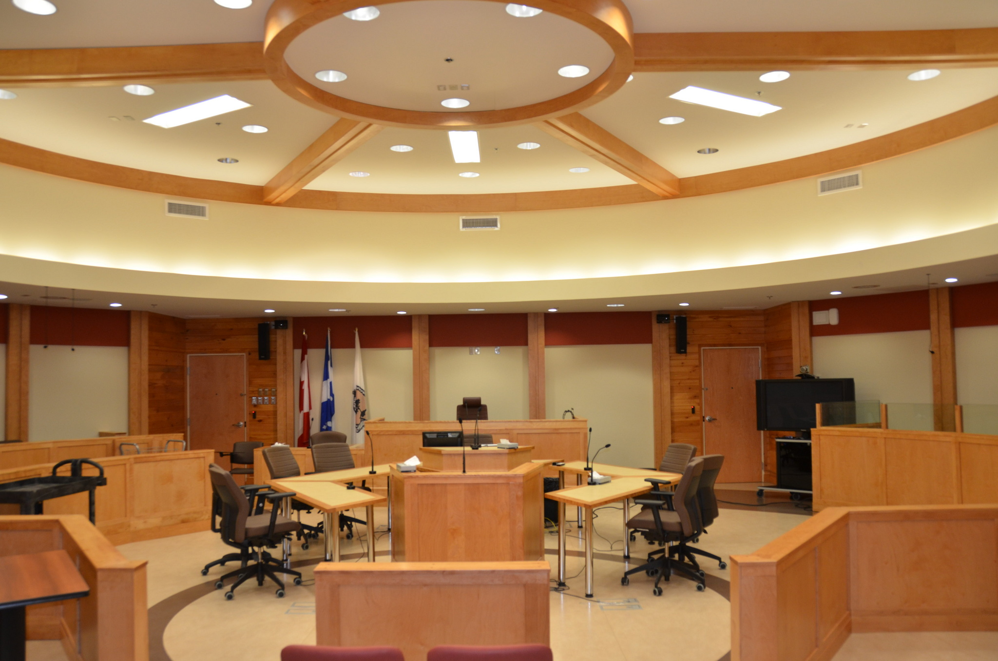The department invited Quebec’s minister of justice to attend the opening of one centre and the minister was bewildered at the design of the courtroom.