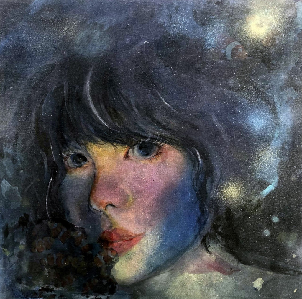 “They buy the student’s work for $500,” Holmes says. “I think it’s a self portrait of her, a closeup of her face, and it sort of looks like she is underwater.”