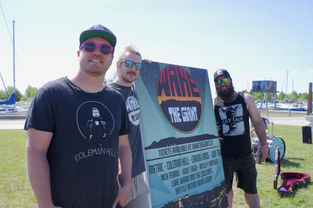 Wake the Giant organizers Greg Chomut, Sean Spenrath and AJ Haapa announced the performers for the Wake the Giant Music Festival, to be held Sept. 14, during a press conference at Prince Arthur’s Landing in Thunder Bay. Photo by Rick Garrick.