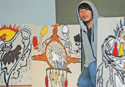 The paintings that Josh Kendricks displayed at a Toronto gallery last week have a lot of sadness in them. That sadness was a big part of his personal reality at the time the works were created. It also reflected the atmosphere in his community of Neskantaga.