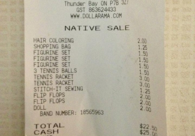 On July 18, father of four Simon Slipperjack was at home after doing some shopping at a local Dollarama location in Thunder Bay when his common-law wife noticed something strange on the receipt.