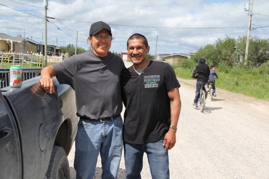 Xavier Kataquapit with his childhood friend and cousin Joey Okimaw at their home community of Attawapiskat First Nation in 2016.
