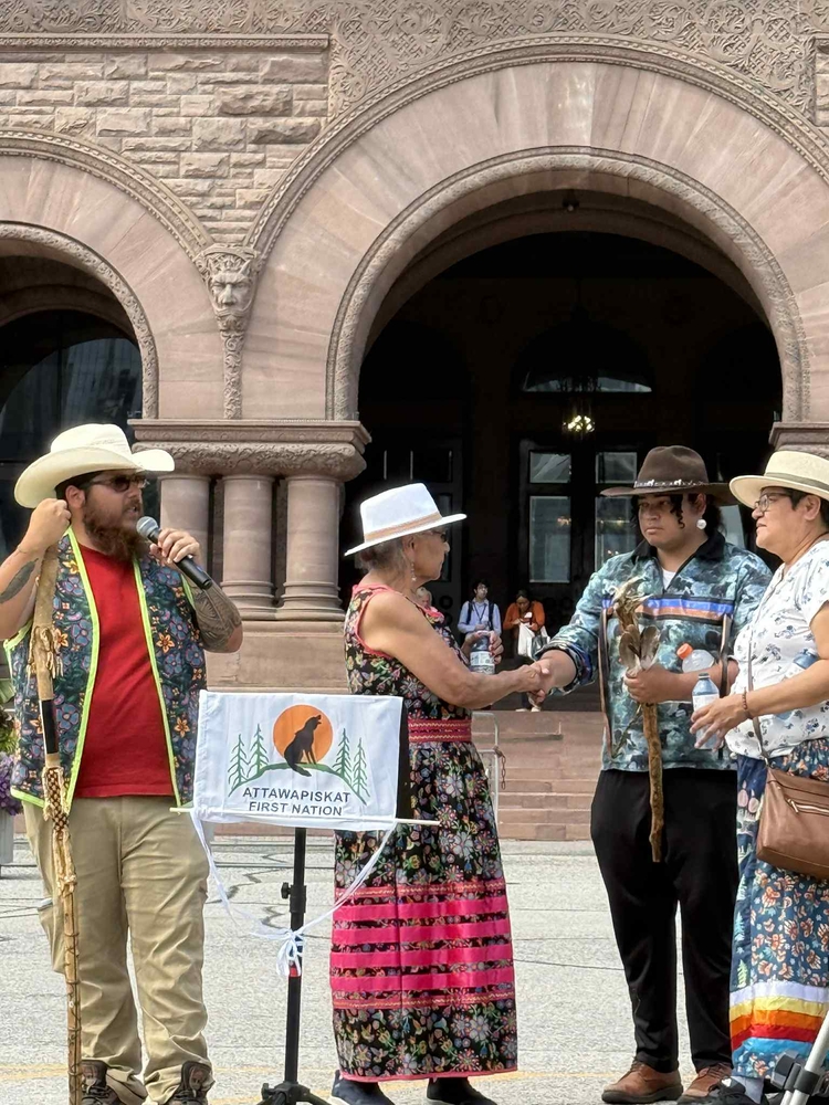Shem Mattinas was also part the Queen’s Park rally as a supporter. He is the grandson, from his mother’s family, of the late Grand Chief Stan Louttit, a celebrated leader who led Mushkegowuk Council and the James Bay territory for many years.