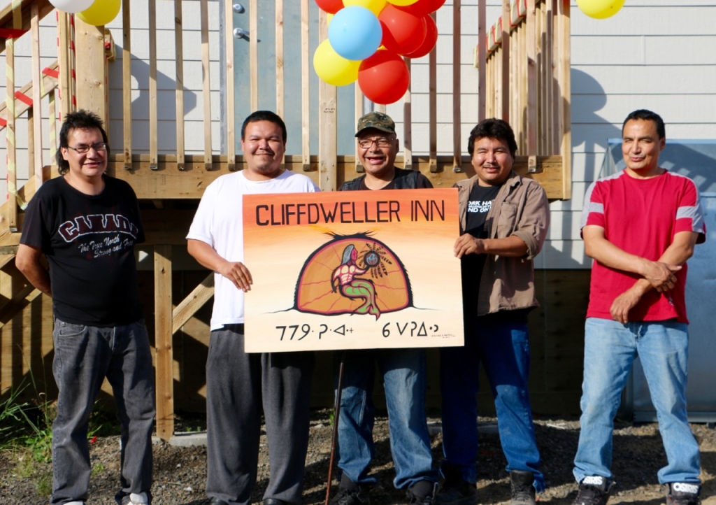The grand opening of North Spirit Lake First Nation’s brand new hotel, the “Cliffdweller Inn,” took place on Aug. 17, with deputy chief Donald Campbell, head councillor Phillip Campbell, councillor Corey Rae, councillor Jackie Kakekagamick, and many community members present for the celebration. Hotel manager Joanne Rae organized the grand opening, along with Kayla Rae and several volunteers from the community who assisted with the event. The name of the hotel was picked by Chief and Council, following submissions by community members Joy Keewaykapow and Philomena Meekis, who received an honourarium for the name. The name was submitted in English and in Oji-Cree and was combined to name the hotel. North Spirit Lake artist Collins Campbell flew in for the event and created the artwork for the hotel.