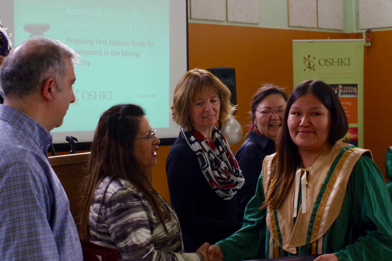 The graduates received certificates from Oshki, and industry-recognized Mining Essentials certificates jointly issued by Oshki and the Mining Industry Human Resources Council. The graduates also received training certificates from Cambrian College, Windigo Catering and YES Employment Services.