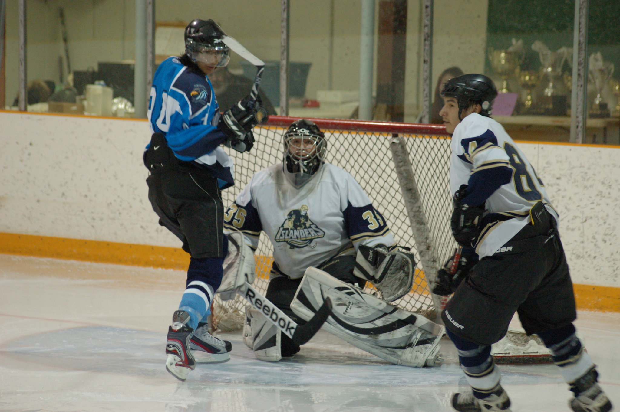 A few minutes later, Shane Sakchekapo opened the scoring for Weagamow, the Islanders took a penalty and suddenly it was the Hawks who applied steady offensive pressure. Sakchekapo then turned from goal-scorer to precision passer, assisting on three more Weagamow goals to tie the score 4-4.