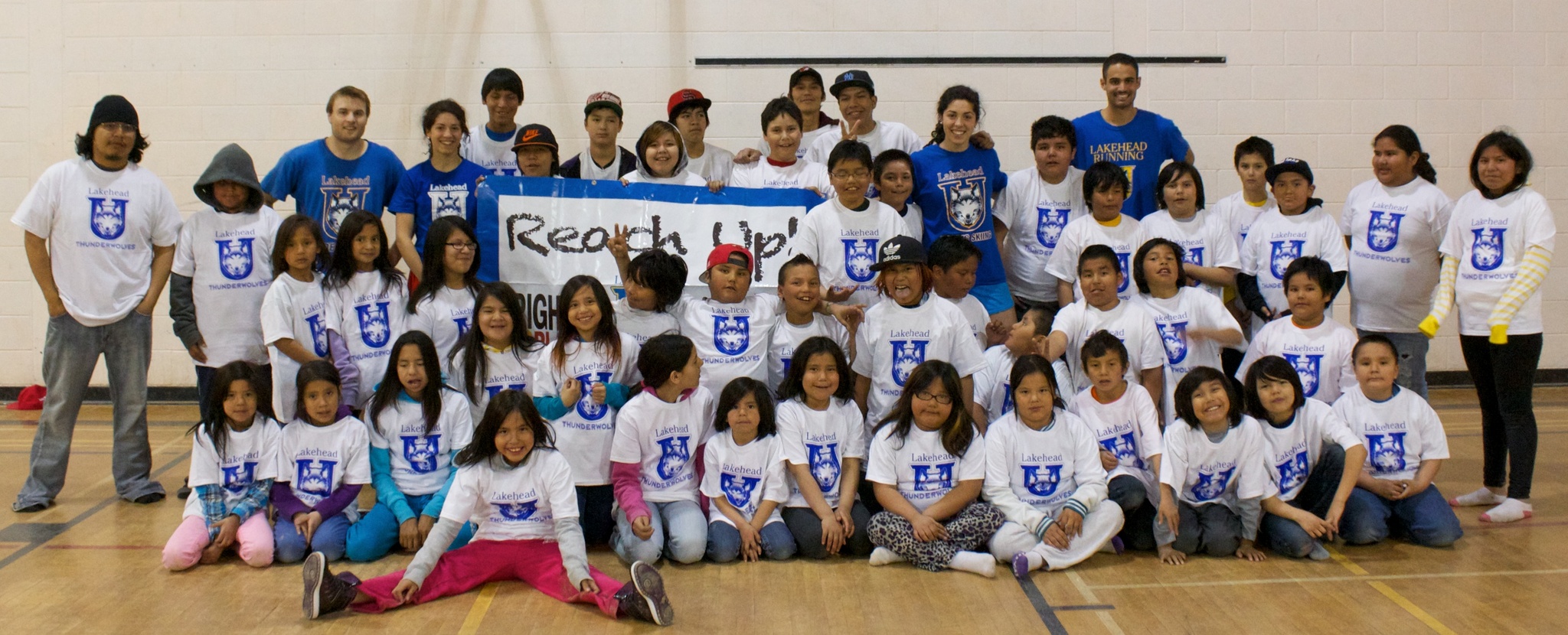 Sandy Lake First Nation youth were greeted by Lakehead University Thunderwolves this past spring when four Lakehead students came to the community for a three day sports and education event called Reach Up!