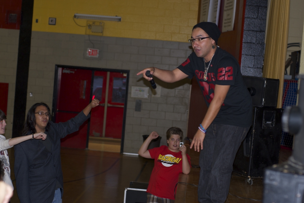 The sleepover began with a performance by Quese IMC, a Pawnee-Seminole hip hop artist from Los Angeles, California.