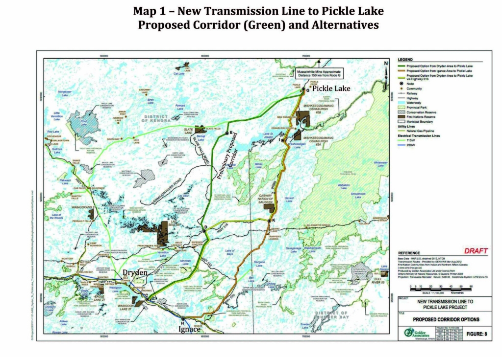 Goldcorp’s involvement in the project has focused on bringing a new electricity line to Pickle Lake, where it could connect to its Musslewhite gold mine. The existing line to Pickle Lake does not have enough capacity for the northern communities. It also is subject to frequent power outages, which disrupt operations at the mine.