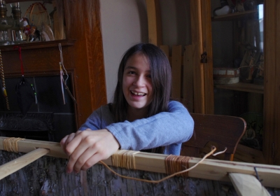 Alyssa Lentz is about half way through the construction of her first birch bark canoe thanks to some assistance from her father, canoe builder Darren Lentz.