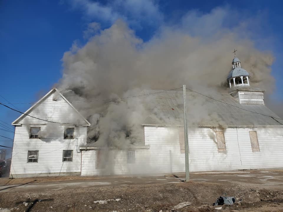 The St. Francis Xavier Catholic Church in Attawapiskat caught fire yesterday April 21, 2021. The historic church, which was built in the 1930's, is one of the oldest buildings in the community. It was mostly constructed by the local people using lumber gathered and milled in the community.