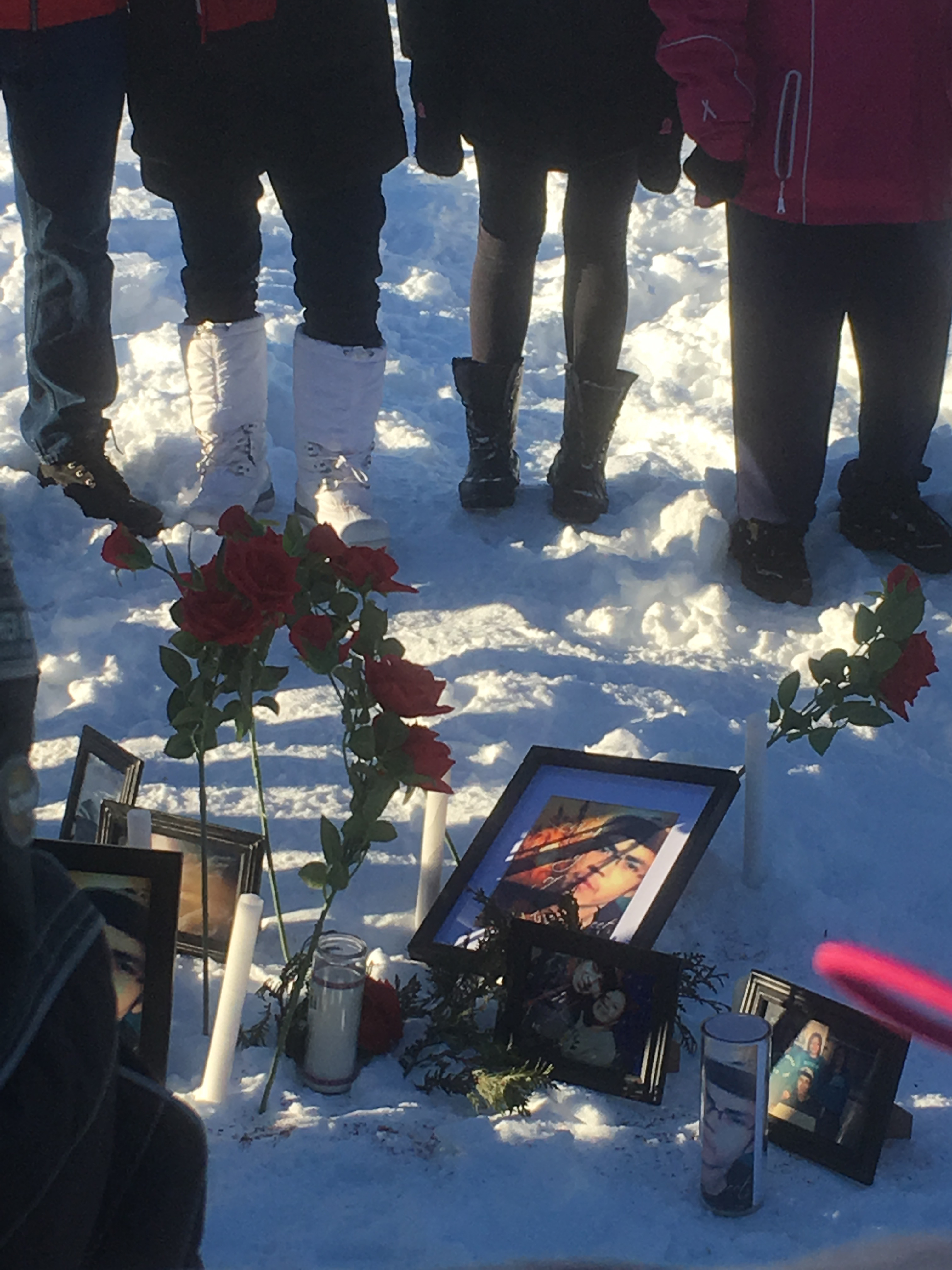 A vigil was held for the late Joey Knapaysweet of Fort Albany First Nation. Knapaysweet was shot and killed by the Timmins Police on February 3. Photo by Chris Kornacki.