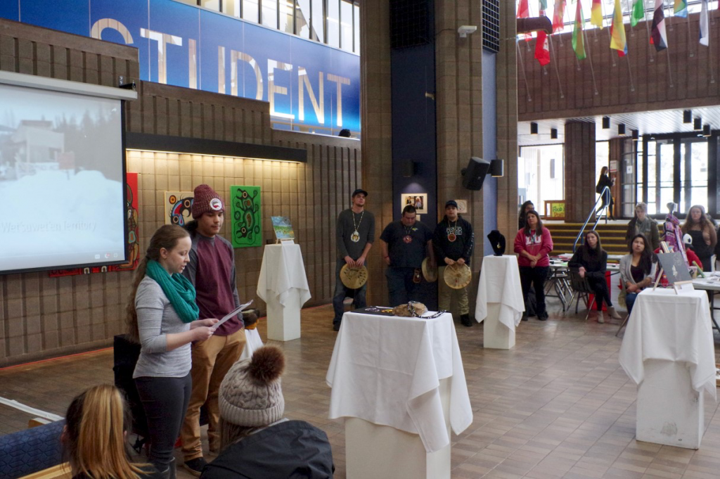 A group of Lakehead University students held an Act of Solidarity with Wet’suwet’en Nation gathering featuring a film screening and curated display at the Agora.