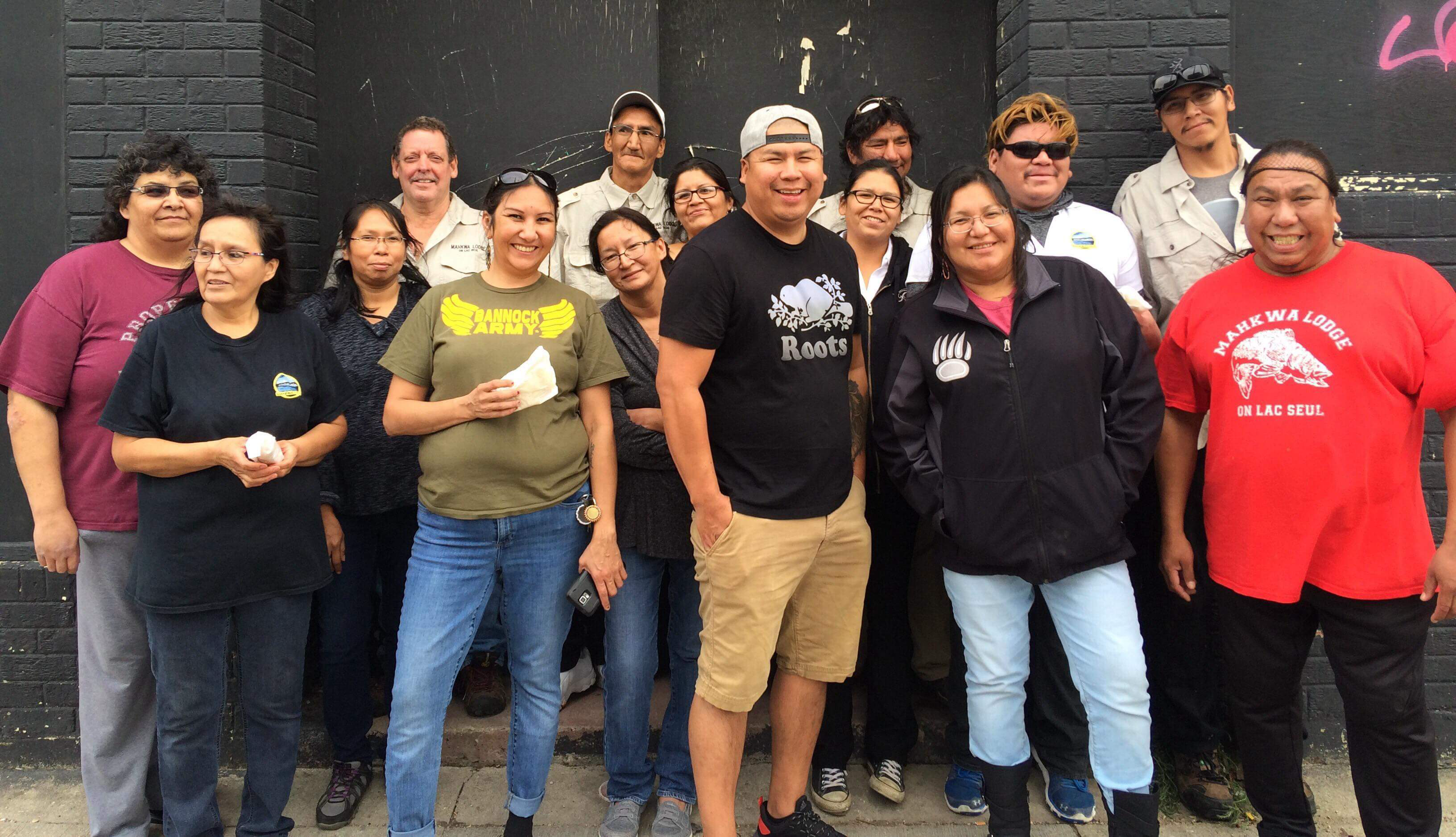 The staff of Mahkwa Lodge, Lac Seul First Nation, were very excited to meet Althea Guiboche, of Winnipeg, AKA “The Bannock Lady” while on a weekend trip to celebrate the-end-of -the-season for Mahkwa Lodge, a grueling seasonal job for most of them, but also a very rewarding job in customer service. By way of the “Moccasin Telegraph”, Maeegan Linklater of Winnipeg told Chris Southwind, Sr. one of the managers at Mahkwa Lodge about Althea. In August, Chris and Althea agreed to join forces to make a hot meal possible for three hundred homeless in Winnipeg. The staff had wanted to engage in an activity that would be meaningful to them based on their traditional values while in Winnipeg.