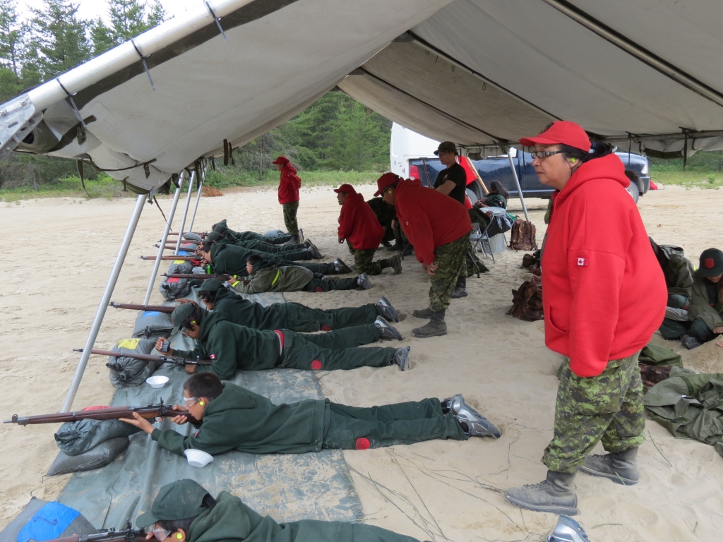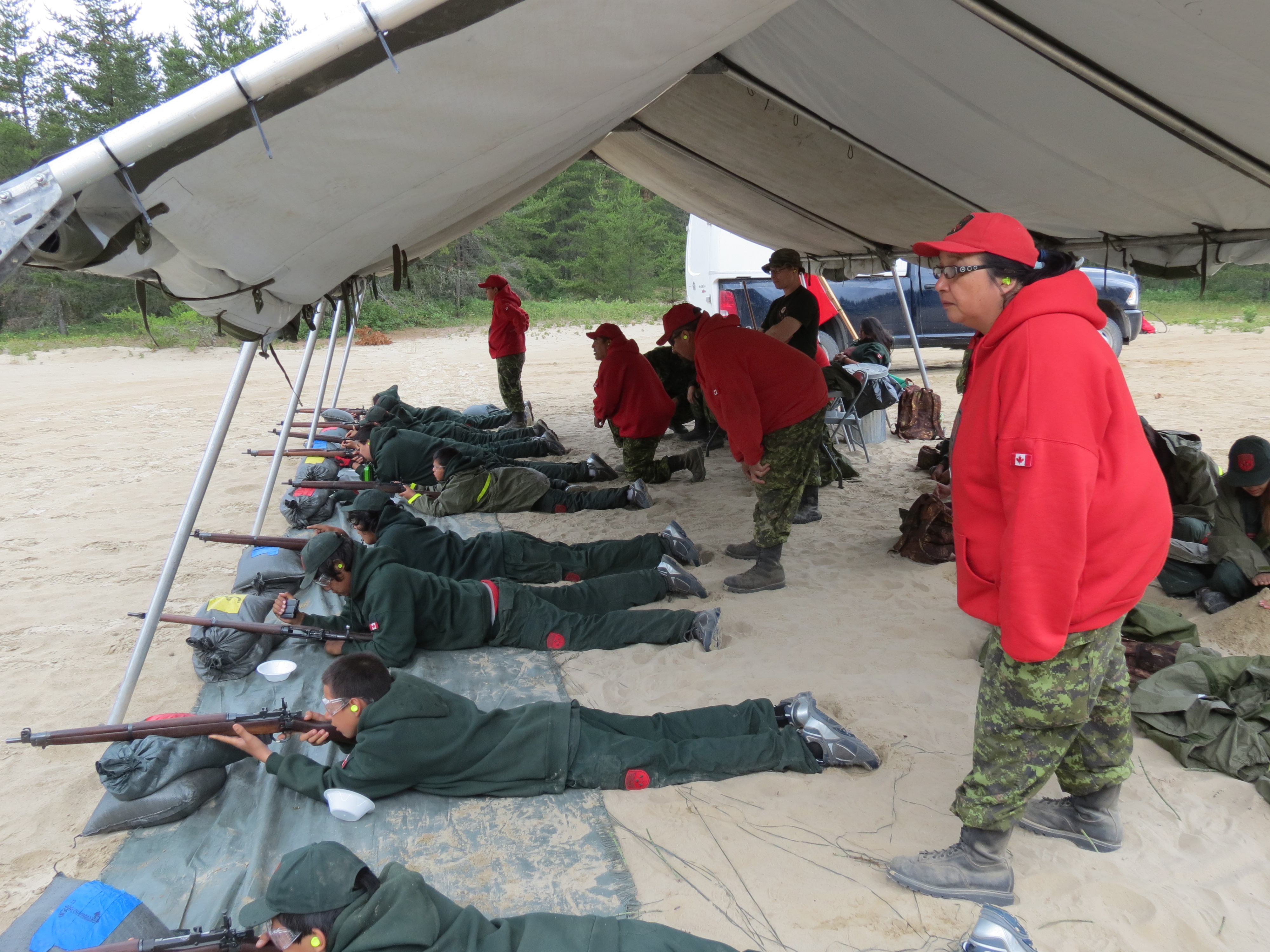 Canadian Rangers supervise Junior Canadian Rangers on a shooting range. Sergeant Peter Moon, Canadian Rangers.
