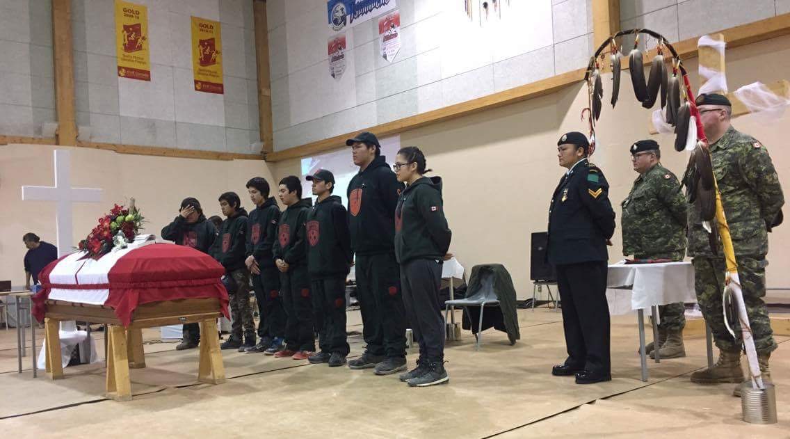 The military paid tribute to his memory at his funeral. Junior Rangers flanked his coffin, which was covered with a Canadian flag, in the gymnasium of the school in Fort Albany. There were also members of the Armed Forces, including Corporal Jennifer Spence, an aunt, who flew to Fort Albany for the funeral.