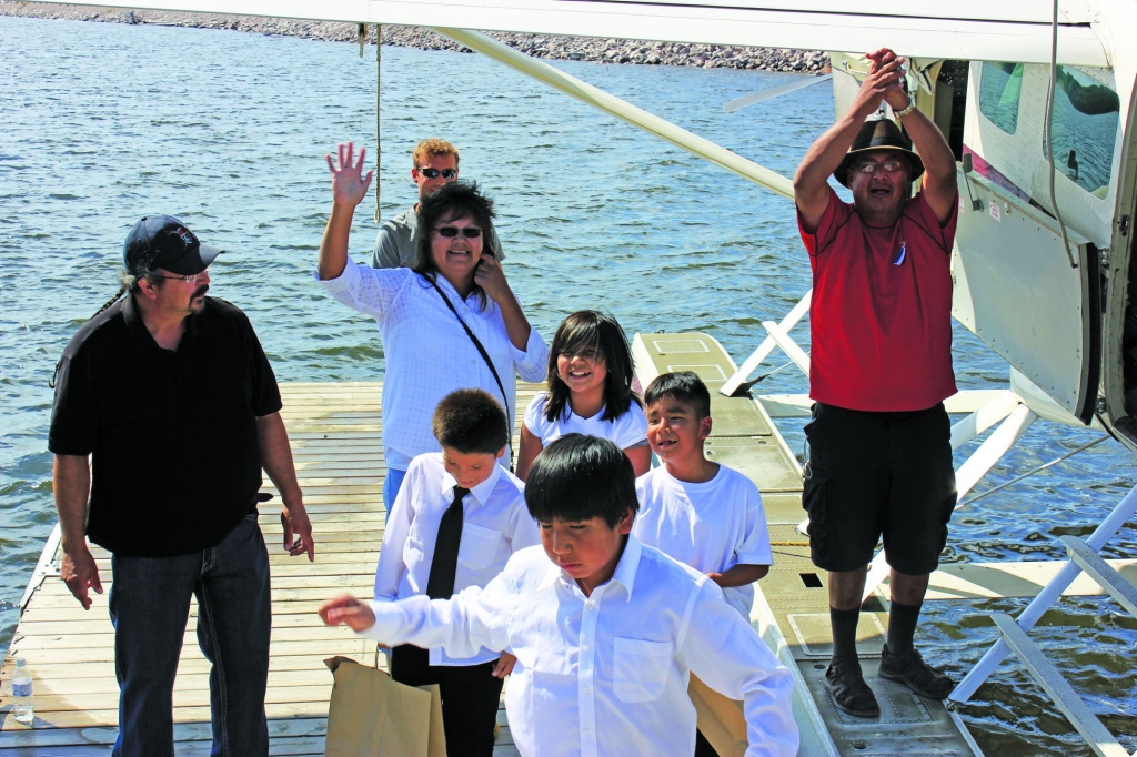 Two planes flew over Archie’s Landing and landed on the right and left docks beside the causeway leading to Kejick Bay – one plane holding officials, the other held children from Lac Seul.