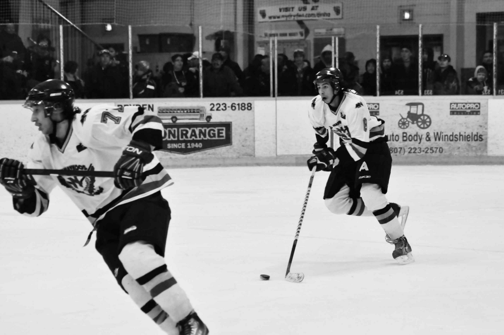 The KI junior players excel in their own ways. Clinton Morris aggressively clears pucks and opposition players from the front of his net; Matthew Morris always seems in the right position and is strong along the boards; Anderson buzzes around the puck everywhere, digging; Hudson provides reliable, stay-at-home defensive play; and Childforever quarterbacks waves of offensive rushes.
